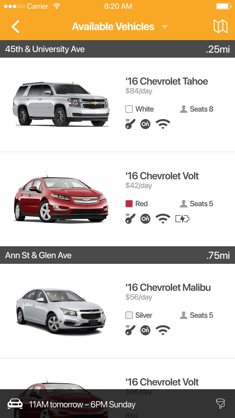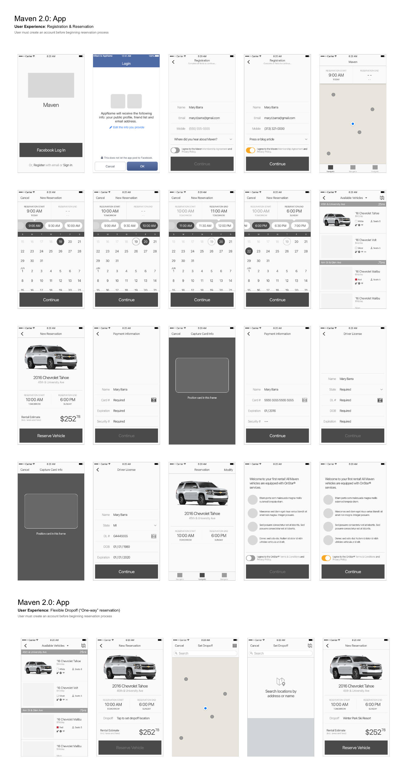 As internal council for other GM “urban mobility” programs (including the Cruise/Lyft autonomous vehicle joint venture), I was also able to consult with the New York based team of BOOK by Cadillac, a luxury carsharing service.This included ensuring Maven's design system could be repurposed for any similar reservation functionality (right).