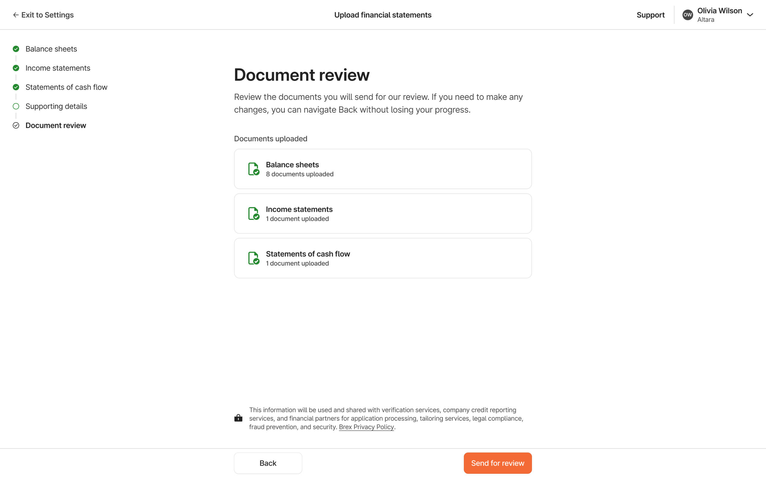 I dove right in and evaluated the existing product experience and design system for a baseline from which to build from. One key design principle I called out to the team early on was to make sure we were addressing the specific demographic’s needs but weren’t creating too far of a deviation from the core Brex product experience, thereby impacting areas like the main codebase, design system, and Support knowledge and documentation.I reviewed the requirements that my Product partner had put together in advance of the studio coming on board. He also shared with me a roundup of customer calls he had used to inform his requirements. After feedback rounds and PRD edits, we finalized the cut line for the MLP.