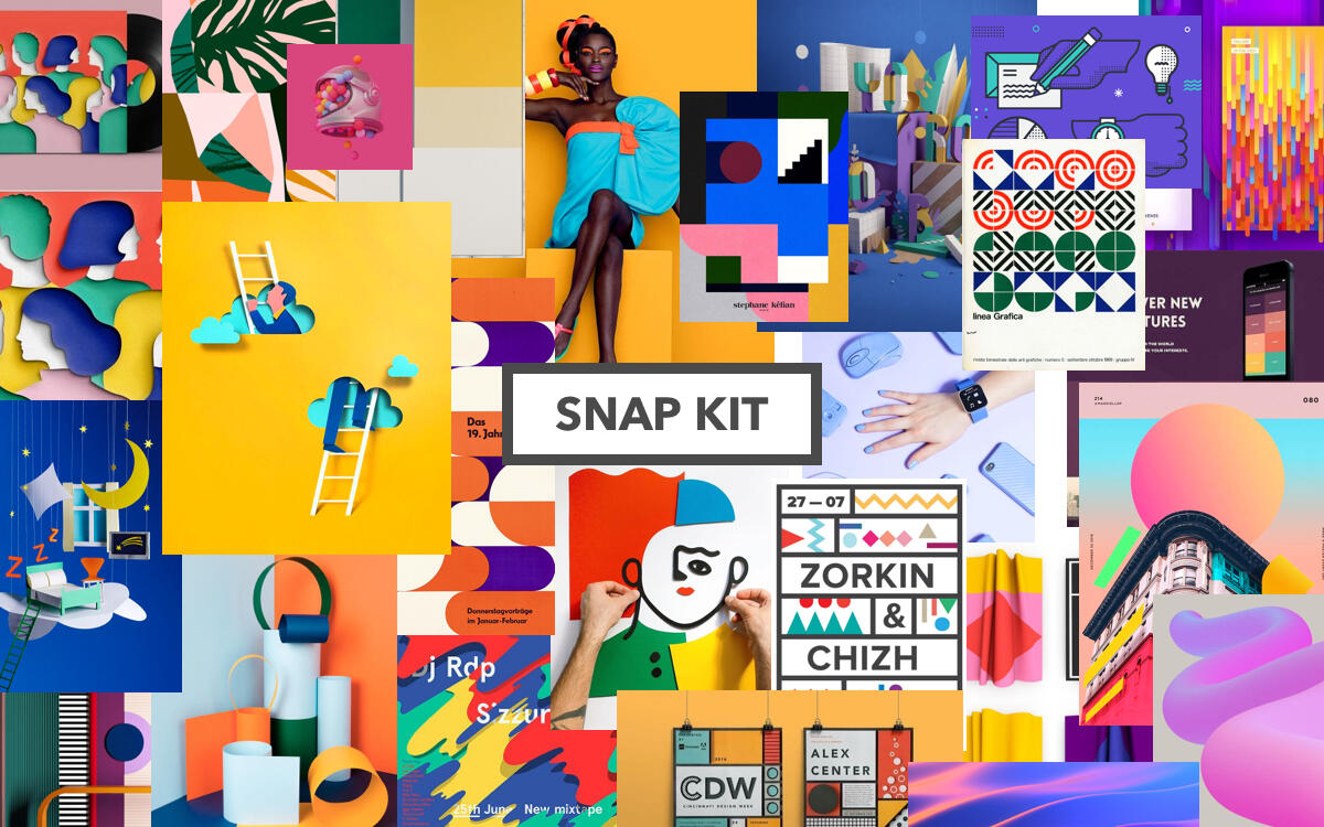 We began with a branding exercise, which I led. We eventually landed on a playful visual concept reminiscent of colorful cut paper, which would play nicely with the parent Snapchat brand (right).The team had trouble deciding between a couple of names for the platform, but I urged them to go with "Snap Kit" as I could foresee the creative potential over a more technical name.The product lead had an illustrator in mind, who we hired. I creative directed him in the "crafty" and "playful" visual style for the pieces we would need. I set the color and iconography of the first four core integrations the team had ready (with two others planned) and called each of these "kits": Creative, Login, Bitmoji, and Story Kit (eventually, Ad and Camera Kit would be added to the assortment in follow up releases).