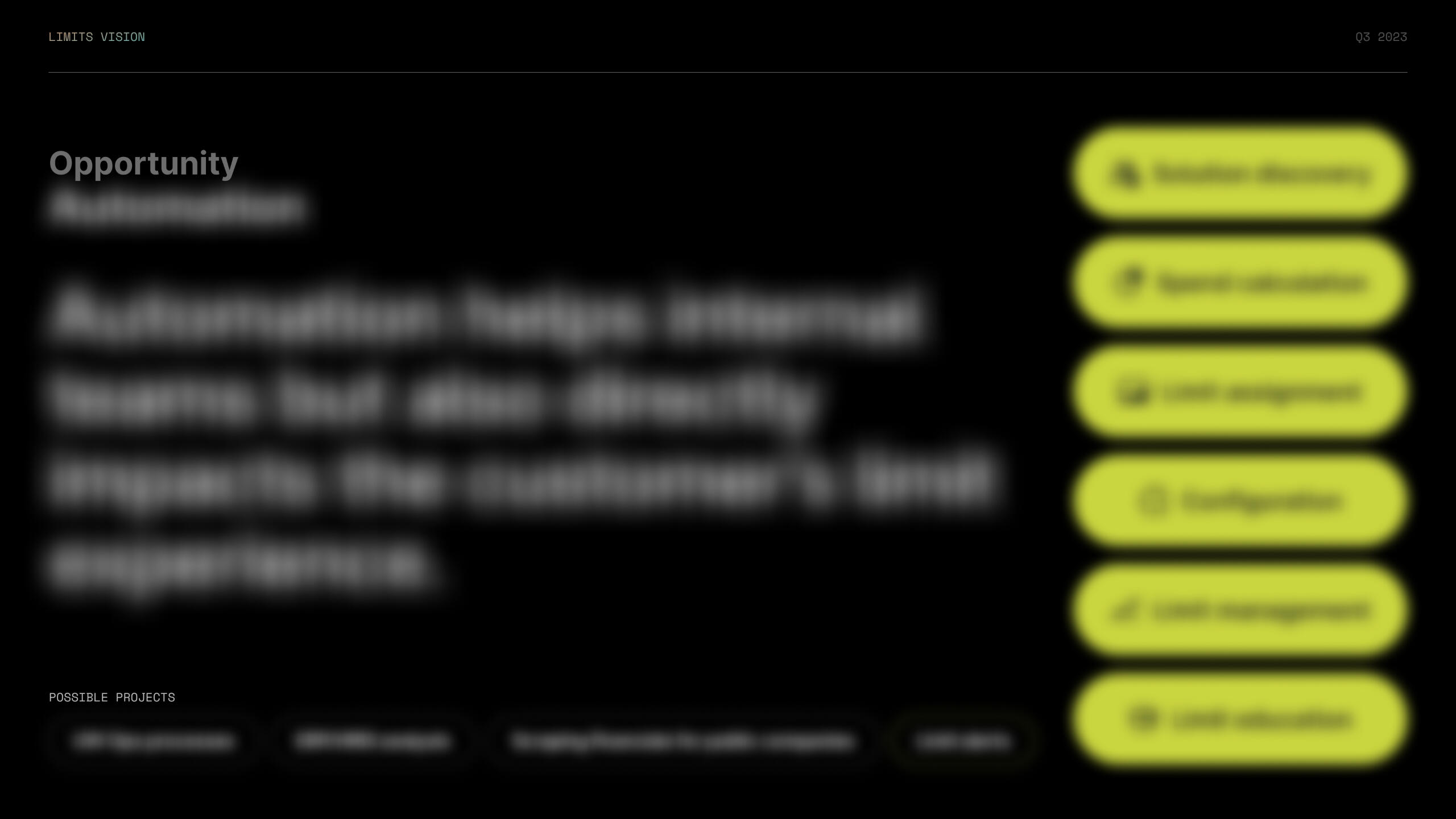 In H2 2023, an improved customer credit limit experience became a major company focus through inclusion as an explicit company OKR. The Global Limits EPDD group leads strategized on multiple ways that we could reduce the key metric — customer credit limit drops — in our specific domains. If a customer remained in good standing and actively managed their credit limit, they would not be "penalized" with a credit limit drop.