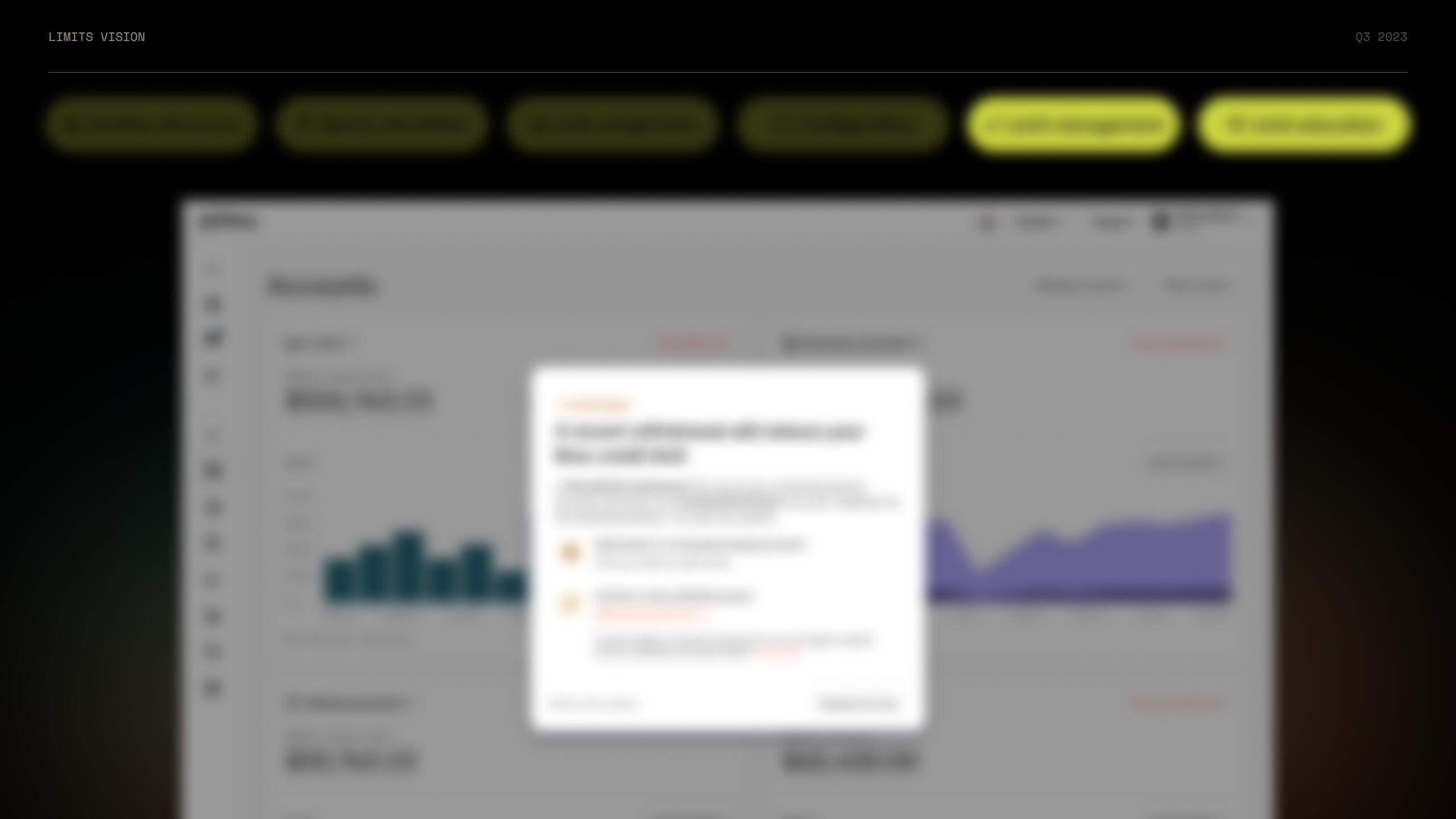 My scope: I served as the Global Limit group’s design lead and product designer for the Limit Experience product team.