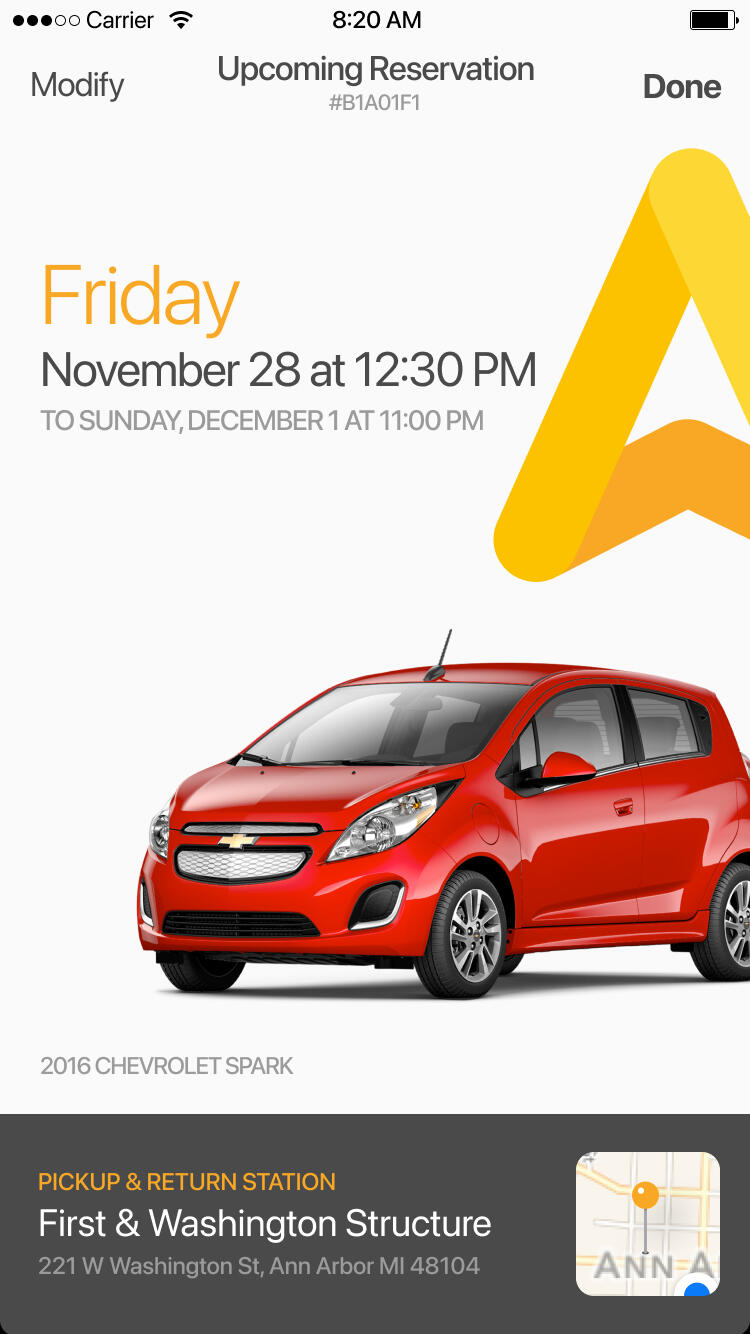 Once we landed on a suitable solution (cleverly using the signup promo code field during registration to fork an onboarding variant for residential carsharing), I began to explore visual designs for the mobile app experience.Since GM was providing the inventory of cars, I was able to showcase the high resolution vehicle imagery in the app experience.