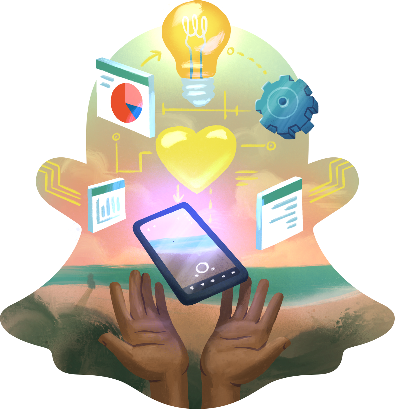 To further evoke the "paper" concept and to play into the existing Snapchat brand and visual references, we had the illustrator render additional "snappy bits" — kit-related iconography and visual flourishes we'd use to decorate the platform's marketing site.