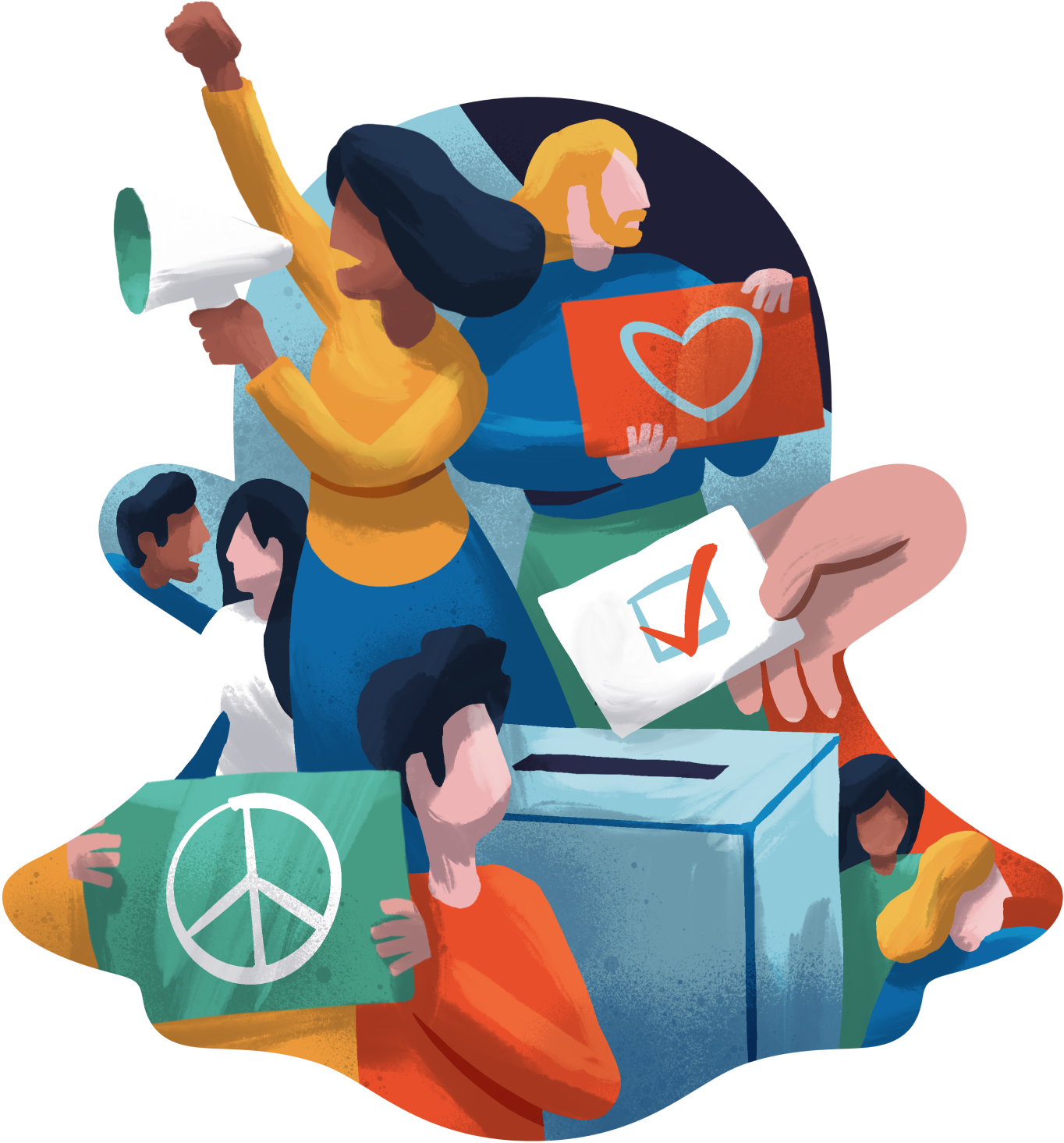 Another corporate team we collaborated with was CitizenSnap, the corporate governance team. We designed a website for them with the Snap 1.0 design system.Additionally, I creative directed an illustrator we hired to design the team's iconography. Based off of the new brand guidelines' "ghost frame" concept, I led the non-design governance team through the iterations to materialize their four principles: Society, Planet, People, and Governance.These visual icons live on at the (now redesigned) CitizenSnap website.